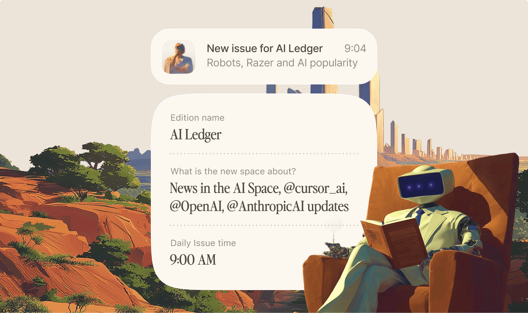 Receive a daily notification when a new issue is ready - in the morning with a cup of coffee, in the evening for a calm read, or anytime in between, with timing set individually for each edition.
